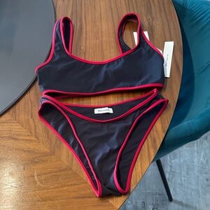 Reformation Vicky Black Bikini Top and Bottom with Red Trim