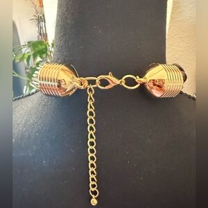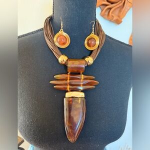 Elevate your style with this chic necklace and earrings set in gold and tan. Perfect for any occasion.