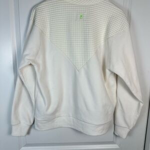 Soft and stylish Dudley Stephens fleece pullover in cream, featuring the signature waffle-textured V-panel across the chest and upper back. This top is crafted from the brand’s luxurious Vello fleece – soft, cozy, and sustainably made from recycled materials.