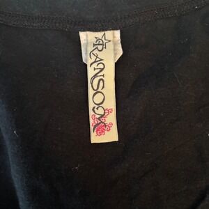 Authentic early 2000s Ransom long sleeve graphic top featuring an edgy gothic wing and fleur-de-lis design with distressed detailing throughout. Classic Y2K rock / rebel aesthetic with an asymmetrical all-over print on the front and sleeves and a fitted, flattering silhouette. In great condition with expected signs of wear for age but no stains or holes.