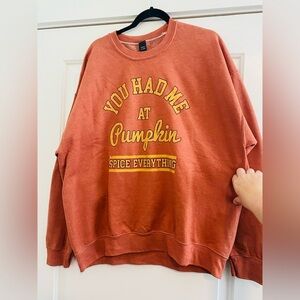 Embrace the season with this cozy pumpkin-colored sweater. Perfect for adding a touch of warmth and style to your wardrobe.