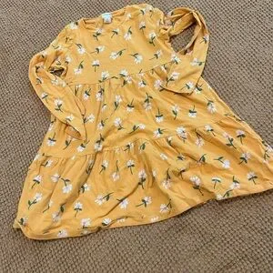 Charming orange dress with floral pattern. Ideal for casual outings. Girls' floral long-sleeve dress size 8. Perfect fall twirl dress!