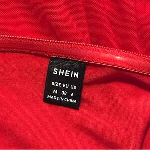 Ruched strapless bustier top from Shein. Features a bold red hue and back zipper.