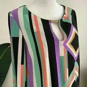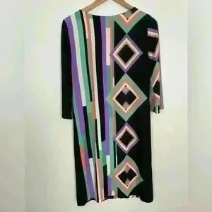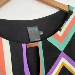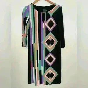 Gabby Skye Womens Midi Dress Long Sleeve Striped Print Colorful Size 10 keyhole