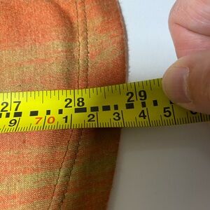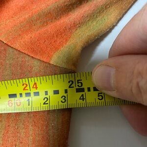 Embrace a unique style with this orange top featuring an artistic boot print. Perfect for casual outings.