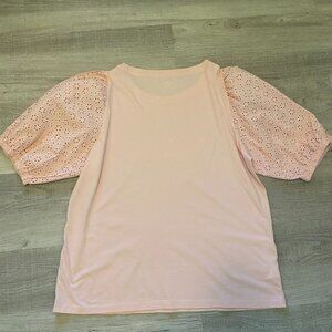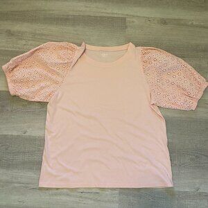 Loft Outlet Eyelet Balloon Sleeve Top Size Large Pink 100% Cotton