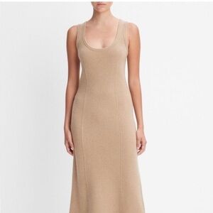 Chic tan midi dress by Vince. Soft wool & cashmere blend. Perfect for versatile styling.