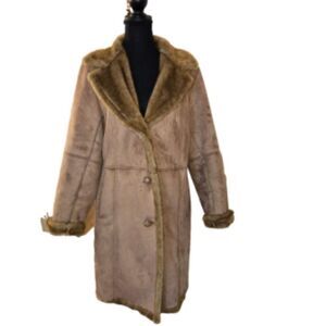 Urtex Faux Suede Penny Lane abdominal fur trimmed jacket, warm and lined with Faux fur and around the arm cuffs and collar.