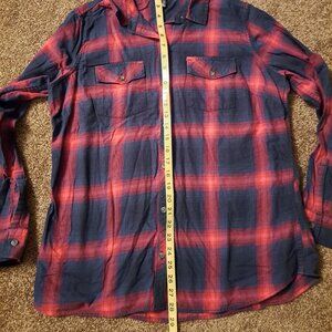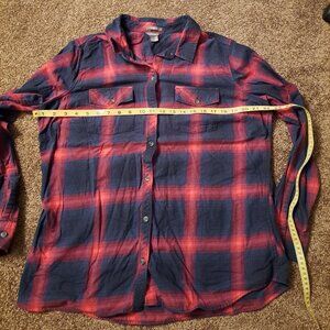 Eddie Bauer Classic Fit Long-Sleeve Red & Blue Plaid Flannel Shirt. Pre-owned condition Size XL *see Pictures for measurements