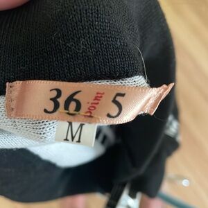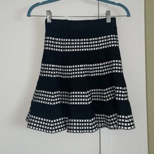 High waisted black & white knit skirt with flared hem. Above the knee great for social or work. Flat elastic waistband. In good condition and super cute