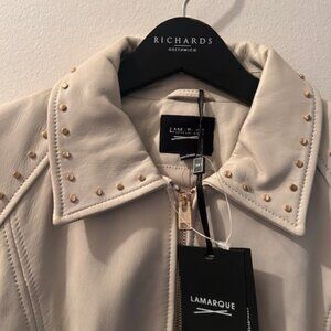 Anthropologie x Lamarque Gali Bone Leather Lined Studded Short Zip Jacket NEW L