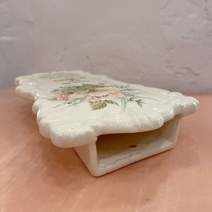 Vintage Ornate Floral Ceramic Pottery Wall Hanging Scissor Holder w Gold Writing
