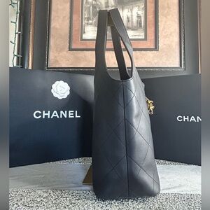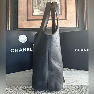 CHANEL (26P) LARGE Shopping Bag Black Calfskin & Gold-Tone Metal