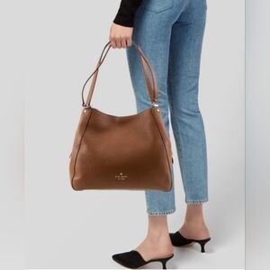 Kate Spade Gingerbread Pebbled Leather Shoulder Bag Leila Triple Compartment