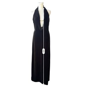 Betsey & Adam Black Halter Maxi Dress Gown Velvet Size 14 Womens