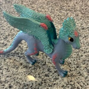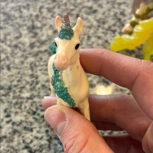 6 piece lot of collectible unicorn and dragon toys by bayala schleich. Slight markings throughout as these have been played with. Still lots of love in them. The fairy is able to come off the horse as well. :) these would be great for pretend play, or even a fairy garden!