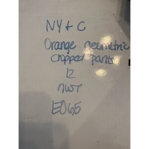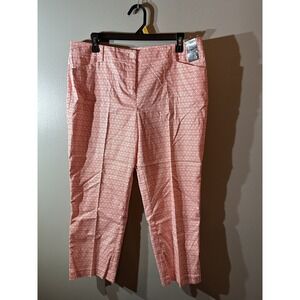 Keywords: NY Collection pants, geometric print, cropped trousers, sateen pants, orange pants, straight leg, women's trousers, casual pants, work pants, summer pants, spring fashion, size 12 pants