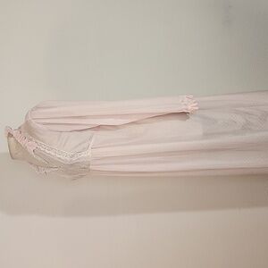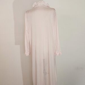 Gotham NY Vintage Robe Semi Sheer Tiny Polkadots Lace Front Long Sleeve Pink Size L Large