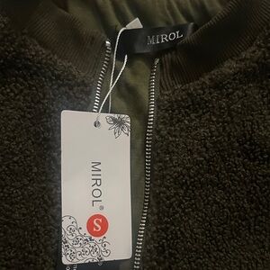 MIROL Women's Fall Fleece Bomber Jacket Trendy Sherpa Winter Coat NWT Stay stylish and warm with this olive green bomber jacket. Perfect for layering, this jacket adds a chic touch to any outfit.