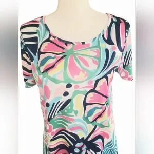 Step out in style with this vibrant floral burst mini dress. Featuring a stunning mix of blue, pink, and green, it's perfect for any occasion. Enjoy the comfort of short sleeves and a chic design.