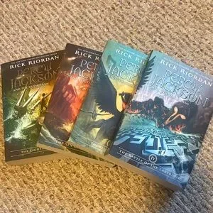 Percy Jackson book set with vibrant covers. Includes four books with blue and orange tones.