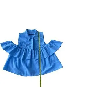 Zara blue ruffle button up off the shoulder top Size Small women's
