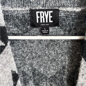 Chic Frye cardigan with black and gray knit pattern. Ideal for cozy layering.