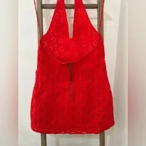 Free People Embroidered Halter Trevi Eyelet Mini Dress Red Women’s Medium NWT
