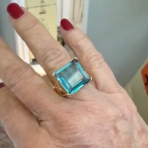 Size 6 Stunning cubic Zirconia Gold and Blue cocktail large statement ring