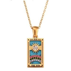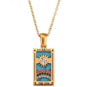 NEW 14K Gold Anthropologie Sun Tarot Card Pendant Necklace