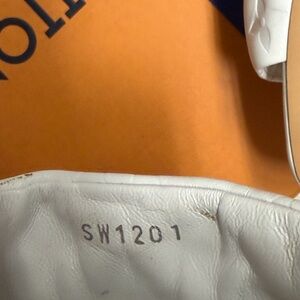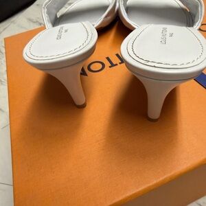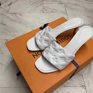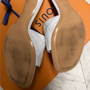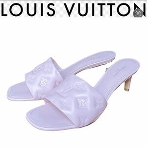 Louis Vuitton kitten heels with embossed design. Luxurious and stylish.