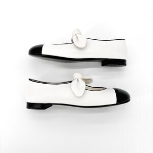 NEW Chanel Lambskin Bow Maryjane CC Cap Toe Flats 37
