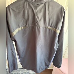 Lightweight and versatile windbreaker. Features a sleek two-tone gray and purple design. Ideal for outdoor activities. Beautiful jacket in good condition. Size L