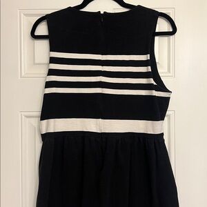 Elegant black and white dress by J. Crew. Features a classic round neckline, back sipper and side pockets.