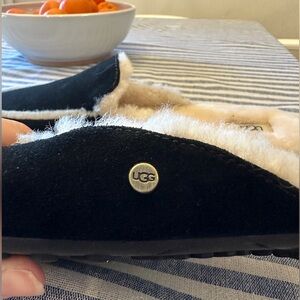 Slip into luxurious comfort with UGG's cozy slippers. Soft black exterior with plush cream lining.