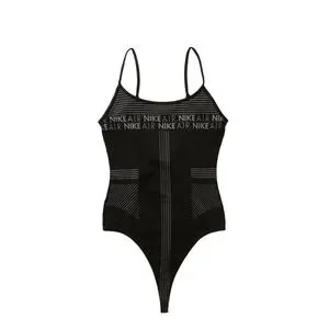 Stylish Nike one-piece with sleek black design. Features white accents and Nike Air branding.