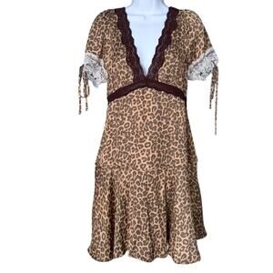 Free People Jos Animal Print Lace Satin Mini Slip Dress Women's Med V-Neck NEW. New without tags. Never worn. Fast shipping.