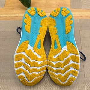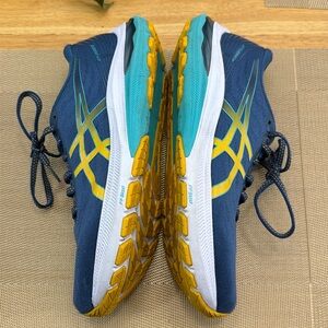 Super comfy Stylish Asics GT-2000 11 athletic shoes. Blue upper with yellow accents. Only worn a few times before I had to have foot surgery and now I need a bigger size. Size 8 M. Excellent condition.