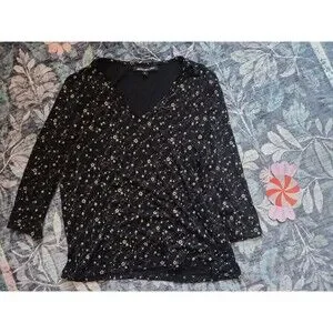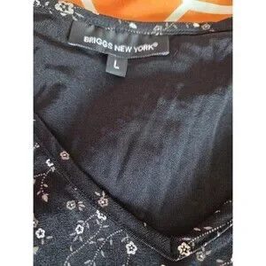 Briggs New York Women's Black Beige Floral Knit V-Neck 3/4 Sleeve Blouse L