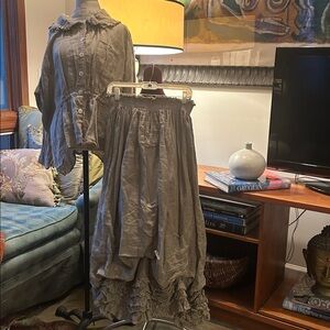 Vintage Magnolia Pearl olive green linen skirt. Hummingbird love series.