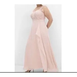 The City Chic Women Size 20 Maxi Sweet Evie Pink Formal Dress is a stunning and elegant choice for any special occasion. Made from a blend of polyester, nylon, and cotton chiffon, this long dress features a sweetheart neckline, sleeveless design, and a ruffled lace accent. Perfect for weddings, parties, or formal events, this dress is both lightweight and lined for added comfort and sophistication. The beautiful pink color and layered chiffon fabric give off a romantic and princess-like vibe, making it a timeless and stylish choice for any season.