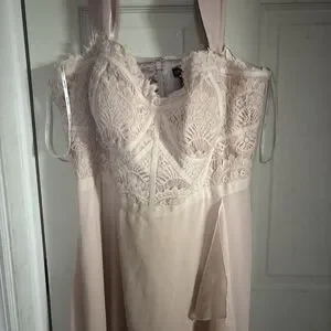 City Chic Women Size 20 Maxi Sweet Evie Pink Formal Dress Lace Chiffon Prom