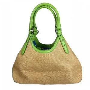 Cole Haan Straw Hobo Tote Kiwi Green Leather Summer Coastal Beach Bag
