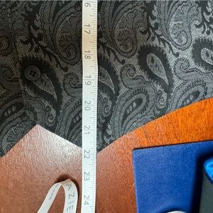This vintage suit vest is reversible featuring one side with black and grey houndstooth pattern and the other side featuring black and grey paisley pattern.