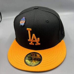Los Angeles LA Dodgers Hat Men 7 5/8 Frozen Orange 59Fifty New Era Fitted Cap