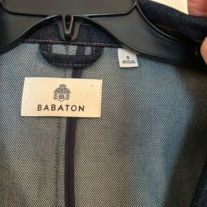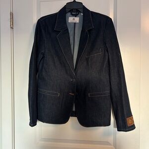 Stylish denim blazer from Aritzia’d Babaton brand. Features classic design with button closure. Has not been worn; pockets are still sewn, shut and the vent on the back of the jacket is also still so shut. In pristine condition.