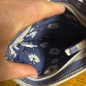 Stylish Dakine messenger bag with blue and white stripes. Perfect for carrying essentials.