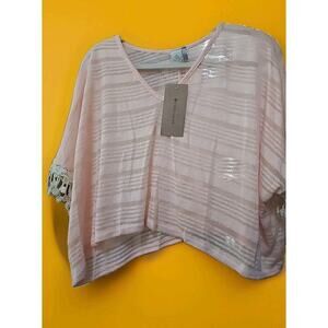 This NWT Anthropologie Paper Crane Popover Fringe Shirt in size Medium features a relaxed fit with a V-neck and short sleeves, making it perfect for a beach, surf, or boho style. The beige shirt with stripes is made of 100% cotton and is lightweight, breathable, and suitable for all seasons. The fringe accents add a touch of bohemian flair, while the pullover closure and easy care instructions make it convenient for everyday wear. Whether for travel, parties, casual outings, work, or business meetings, this top is versatile and chic.
