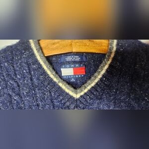 Vtg Tommy Hilfiger Sweater Vest Men XL Wool Blend Blue Braid Knit Y2K Old Money