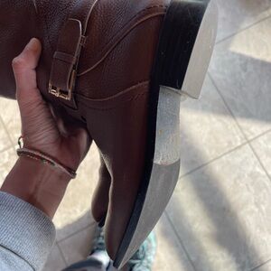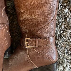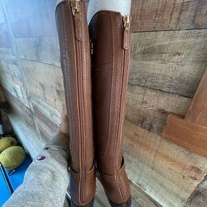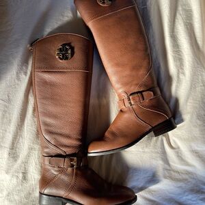 TORY BURCH ADELINE 21MM ALMOND BROWN TUMBLED LEATHER RIDING BOOTS W7